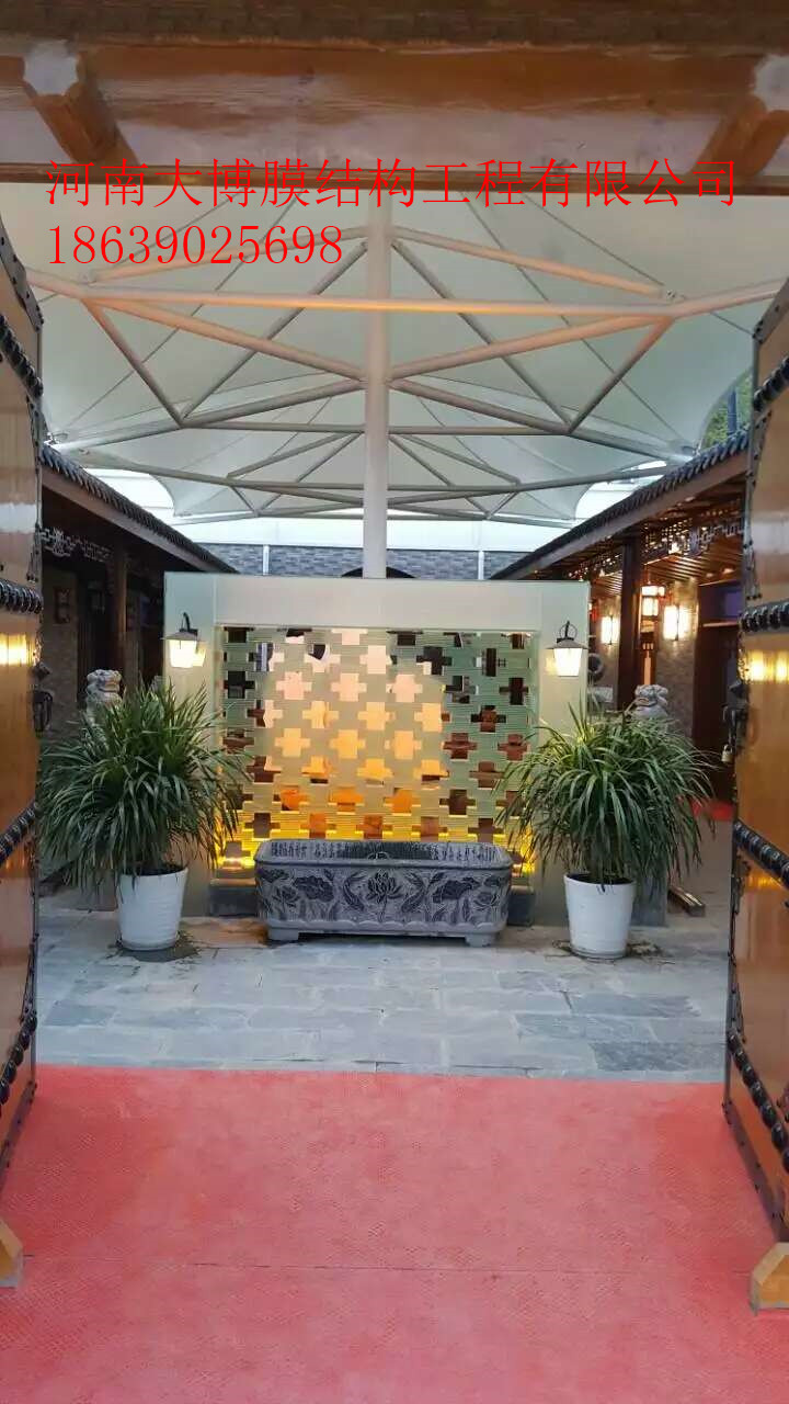 河南大博膜結構公司主營業務:景觀膜、停車棚、沼氣柜、污水處理池反吊膜、ETFE膜、充氣膜、收費站、體育場、看臺罩棚、加油站、商業大門、地鐵入口、攪拌站封閉、建筑穹頂等結構,公司引用同濟大學研發的3D3S等設計軟件進行膜結構建模,荷載分析,裁剪及結構計算,與許多國內院校、設計院及協會權威、研發機構保持良好的技術合作。公司致力于以專業的技術打造膜結構工程,維護“河南大博”的行業品牌形象。公司承諾:質量是企業的生命,信譽是企業的靈魂! 愿河南大博以誠信的服務理念為您提供滿意的服務!